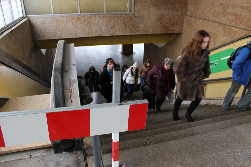 Žiaľ, 12. februára tohto roka ešte eskalátory nefungovali a žiaden pohyb nenaznačoval, žeby sa niečo chystalo. Myslíme, si, že mesto malo od leta už dosť času nato, aby túto, takpovediac banalitu, vyriešilo. Riešenie pohyblivých schodov malo určite dostať prednosť pred opravou dreveného prístreška. Dokedy budú cestujúci ešte čakať a vláčiť ťažkú batožinu po schodoch? Vari môžu zato, že samospráva je v tomto ohľade byrokraticky pomalá?