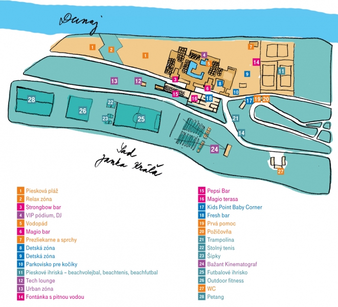 Nový vizuálny štýl Magio pláže je dielom umeleckej grafičky Niny Weisslechner. Súčasťou priestoru bude aj 19 metrov dlhá maľovanka, ktorú budú môcť návštevníci počas leta vyfarbovať