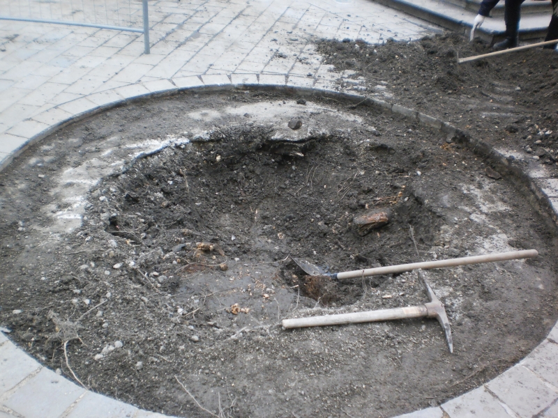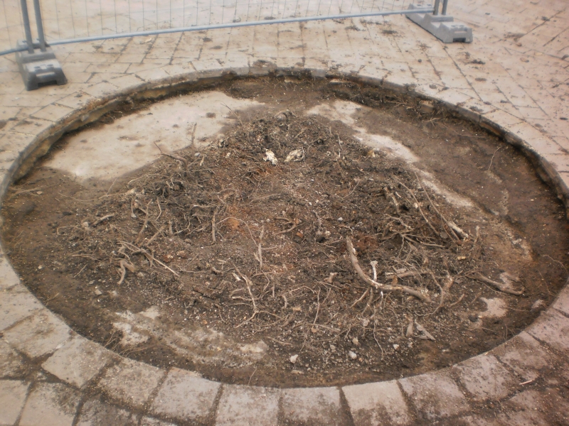 Počas archeologického prieskumu bolo zistené, že otvor, v ktorom dreviny rástli, nebol v skutočnosti v takom priemere ako mreže na povrchu, ale približne 15 - 30cm pod úrovňou zeme, kde sa nachádzala betónová platňa. To znamená, že v čase, keď sa námestie dláždilo, boli korene stromov a kmene stromov zabetónované. Aj to bolo jednou z najdôležitejších príčin chradnutia stromov. „Stromy nemali prevzdušnenú koreňovú misu, pôda bola zhutnená, korene sa nemali kam rozvíjať, počas dažďov tam stála voda a korene odhnívali. Takisto je možné, že počas betónovania boli korene, ktoré im zavadzali, osekané“ povedal Peter Bali z oddelenia životného prostredia a mestskej zelene.